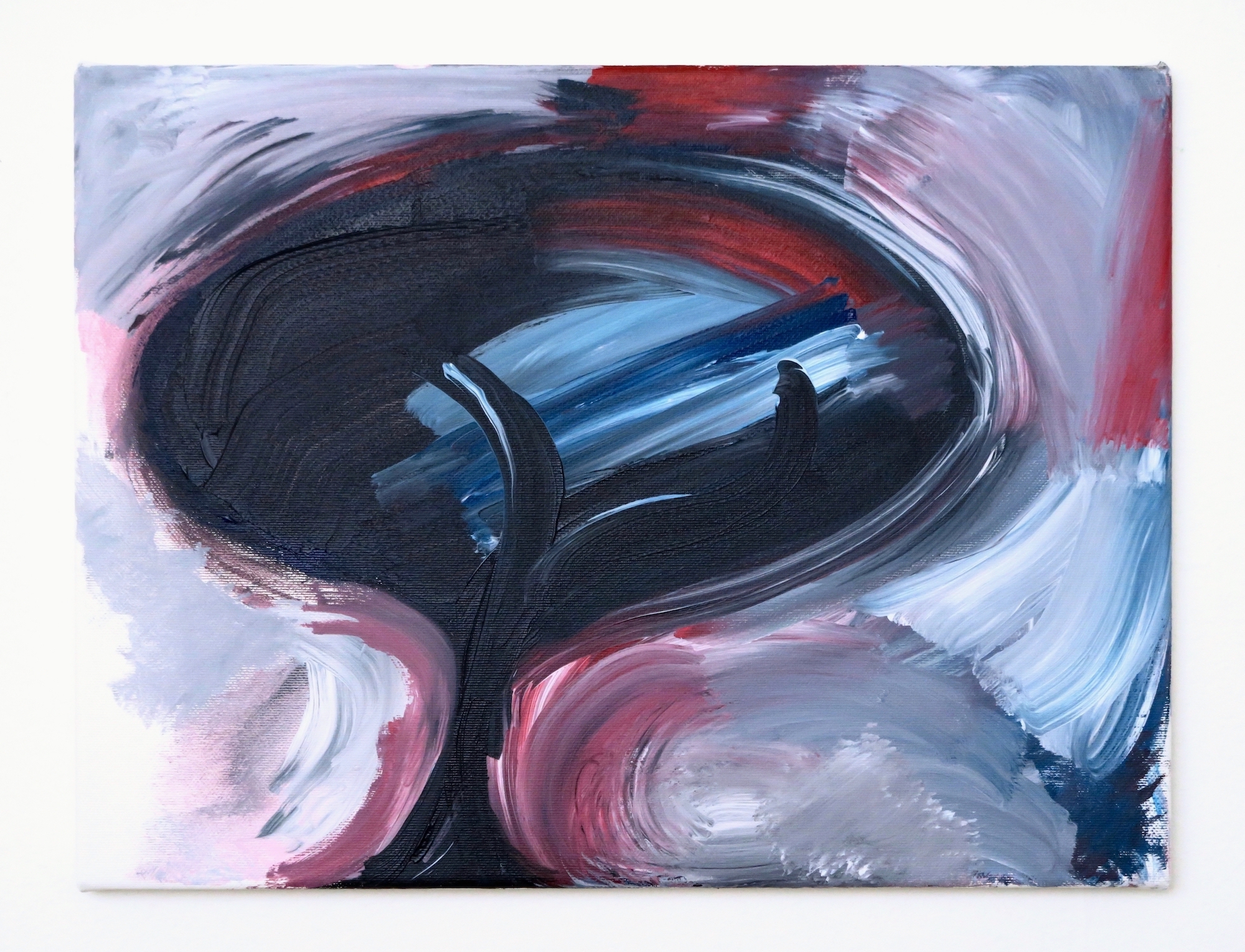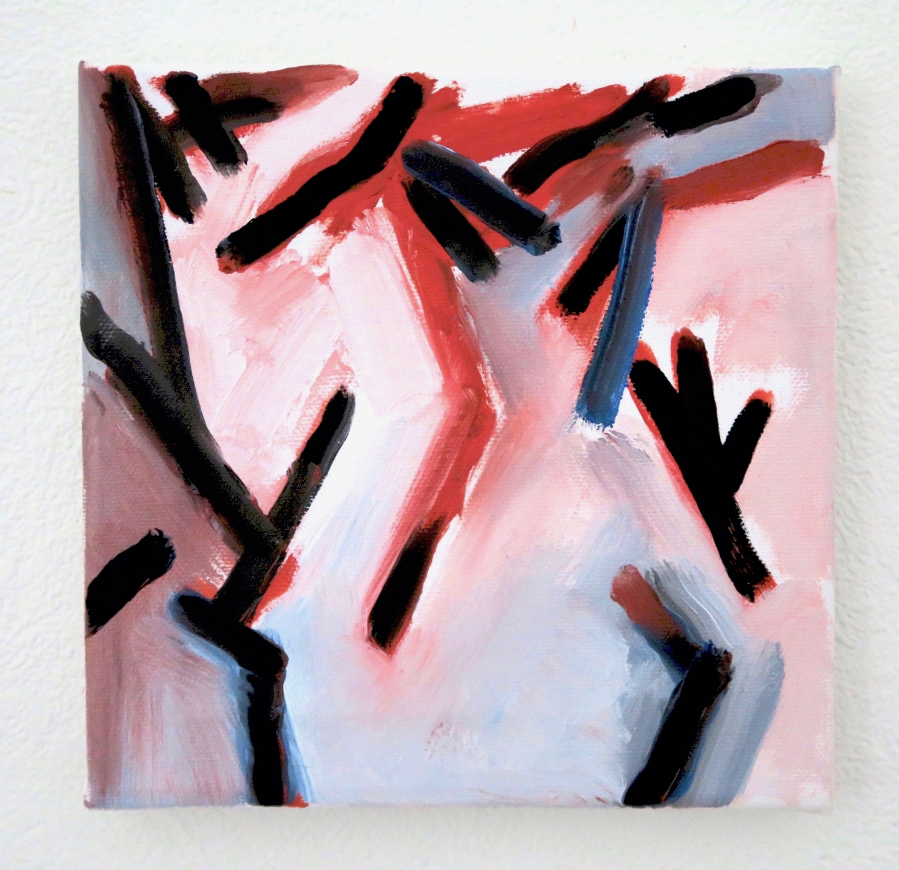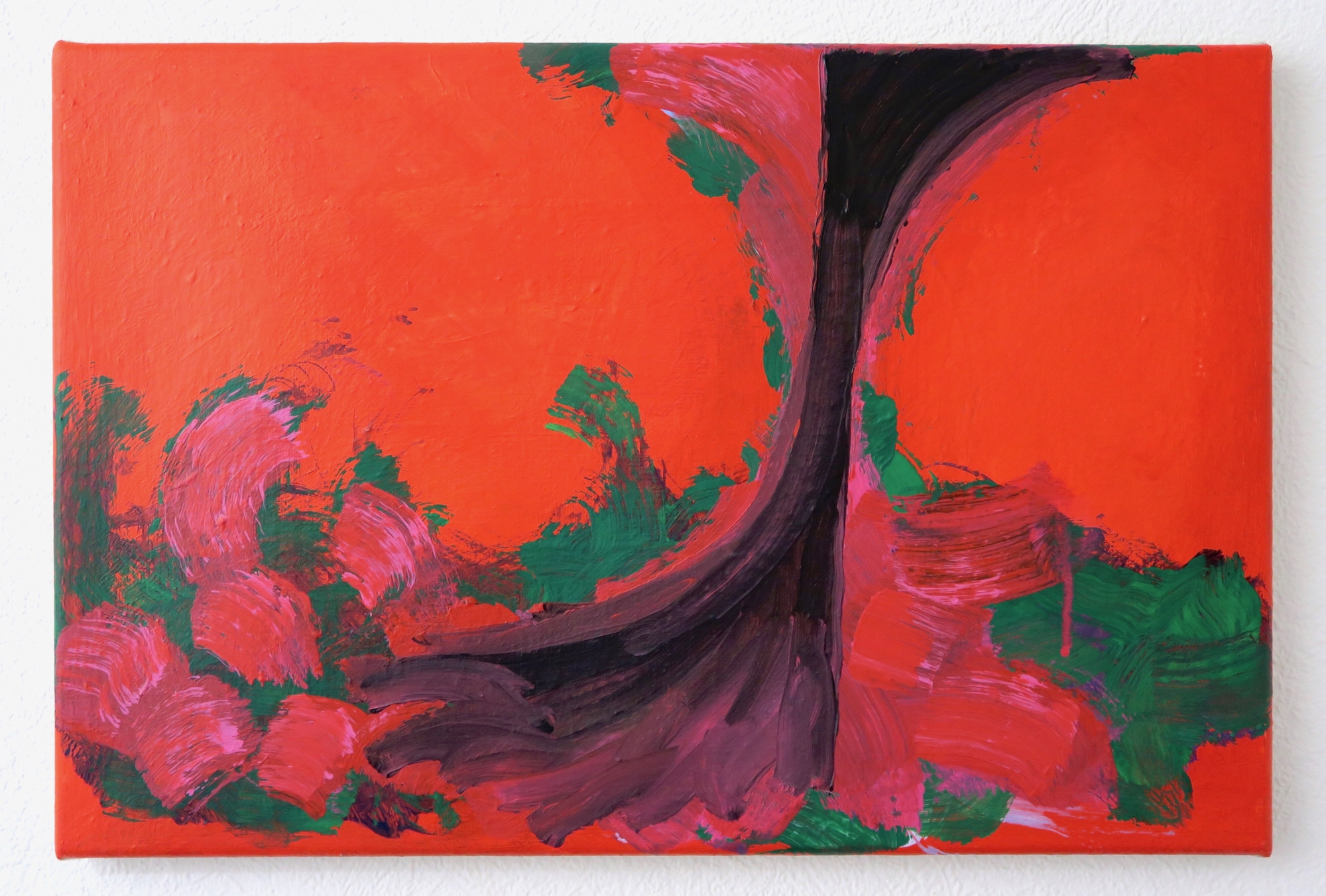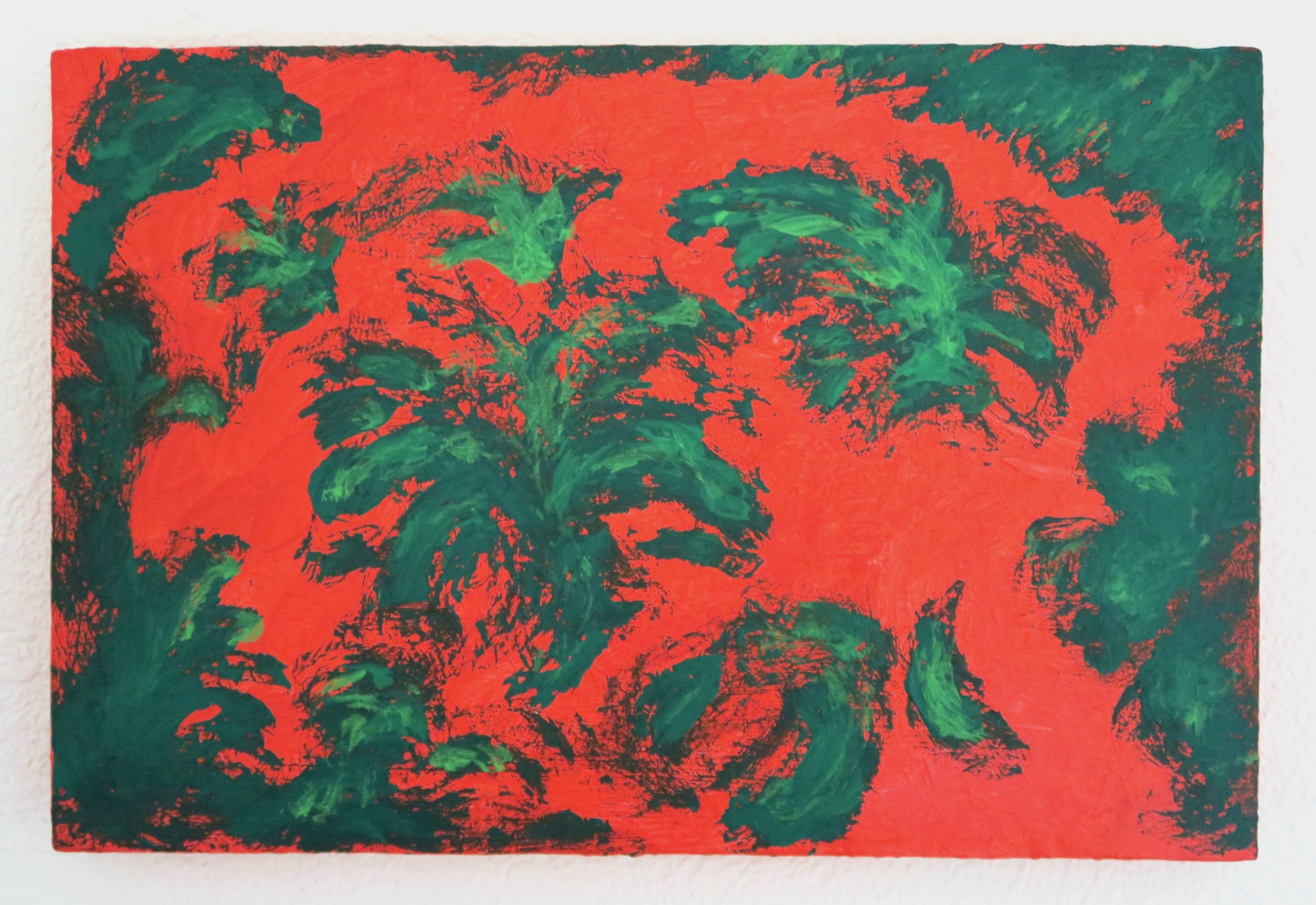 - The composition seems to continue outside the edges of the canvas or panel.